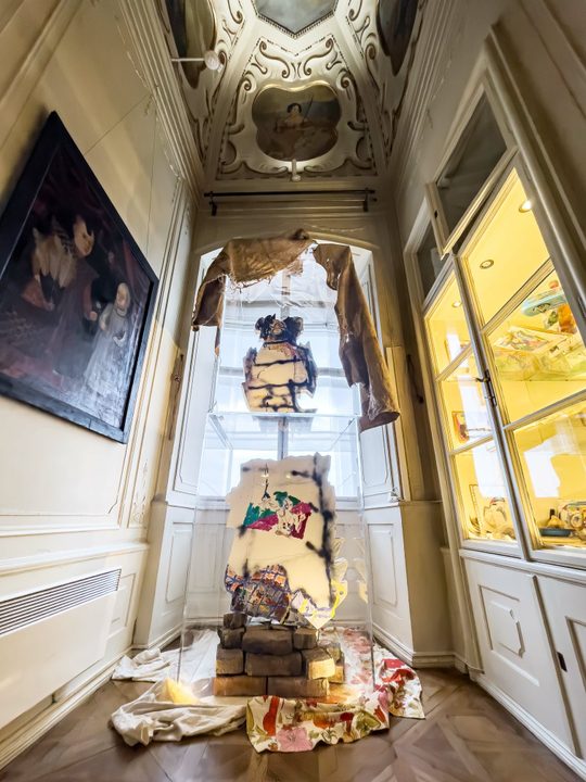A műleírások az orfikus kubizmus stílusához igazodva kör és félkör alakú szőnyegeken jelennek meg, modern formákat és színeket csempészve a történelmi terekbe. Ezzel a kontrasztos megközelítéssel a kiállítás a Haydn explozív kiállítás által már sikeresen megalapozott display-hagyományt folytatja. A történelem ezáltal inkább folyamatos forradalomként, mint szokványos múzeumként értelmezhető.
