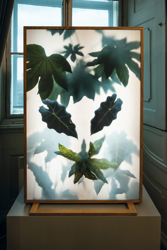 A kandallóra elhelyezett világítóbox fóliájára sűrű párából elősejlő levelek egy arc körvonalát rajzolják ki. A képen különböző, Ázsiából Európába importált, időközben az itteni ökoszisztéma aktív és gyakran vitatott szereplőjeként számontartott növények zöld leveleit látjuk. A Kis kínai szalonba betelepülő új, növénylakó kihívóan szemléli a látogatót, hiszen az idegennek tűnő arc egyben a 18. századból származó tapétákon látható kertjelenetek visszatérő szelleme.